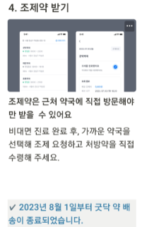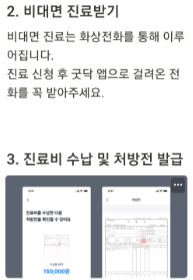 - 약국 정보 및 약 배달 서비스: 비대면 진료를 통해 처방받은 약을 가까운 약국에서 찾거나, 배달 서비스를 통해 집까지 받을 수 있습니다.