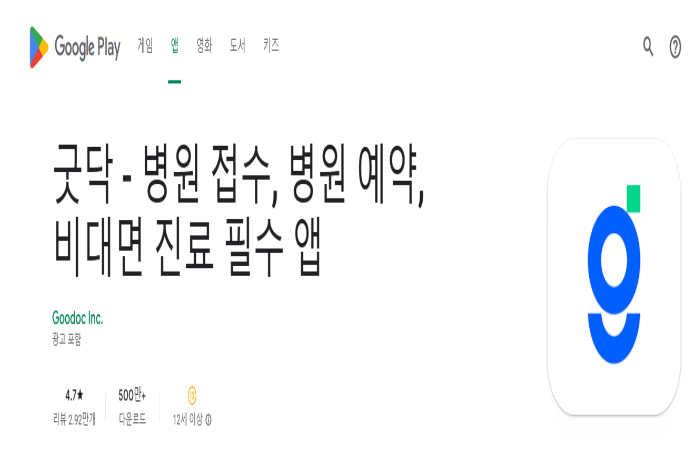 우선 스마트폰의 앱스토어에서 '굿닥'을 검색하여 어플을 다운로드하고 설치합니다.