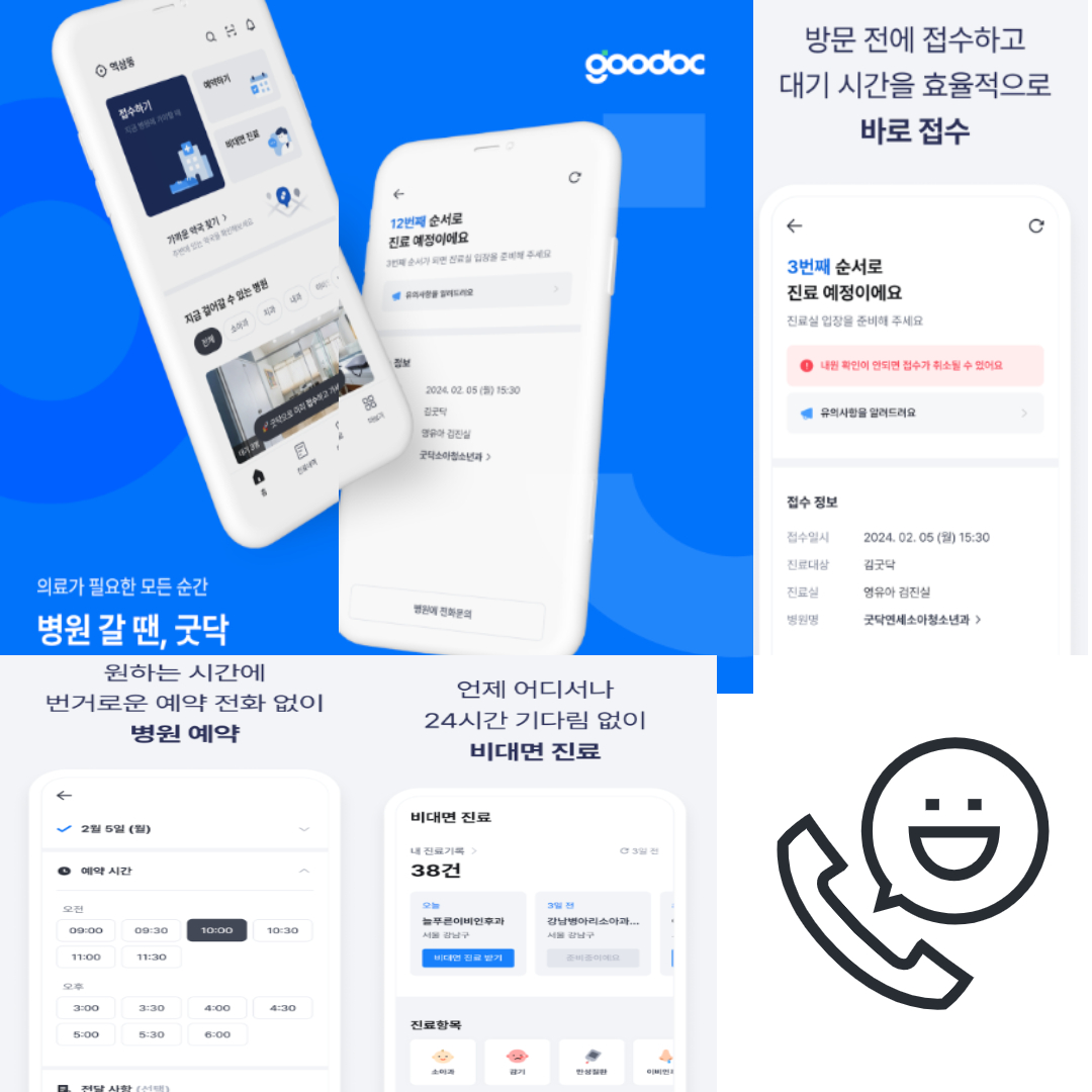 - 다양한 의료 서비스 제공: 굿닥은 일반적인 진료뿐만 아니라 전문 진료, 치과, 한의원, 안과 등 다양한 의료 서비스를 비대면으로 제공합니다.